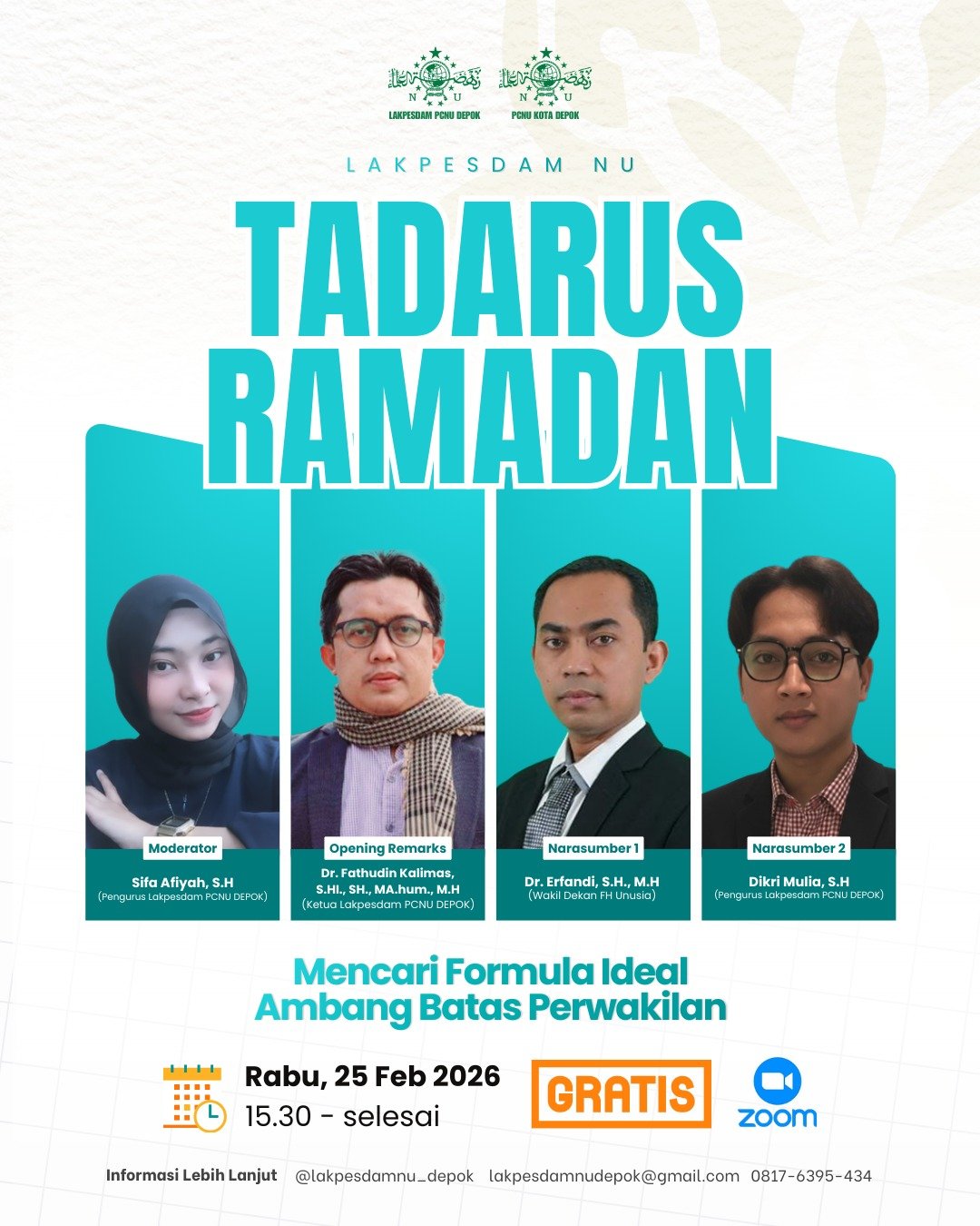 • Dr. Fathudin Kalimas, S.HI., SH., MA.Hum., M.H (Ketua Lakpesdam PCNU Depok)